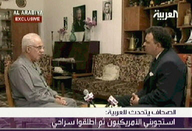薩哈夫在電視上露面的時候身穿合體的便裝,唯一的變化就顯得瘦了,頭發(fā)也一下子白了很多。這跟先前一身軍裝,貝雷帽下的頭發(fā)黑的發(fā)亮的薩哈夫新聞部長的形象顯得很不一樣。(徐冰川/聞新芳)
