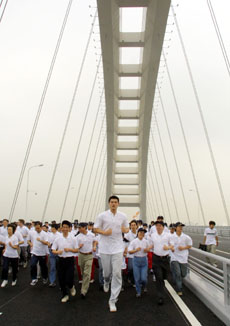 中共中央政治局委員、上海市委書記陳良宇出席大橋建成通車儀式,并宣布“上海盧浦大橋通車!”
