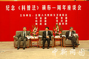 為此,中國全國人大教科文衛(wèi)委員會、中共中央宣傳部、教育部、科技部、司法部、財政部和中國科協(xié)二十九日聯(lián)合在北京人民大會堂舉行座談會,紀念這一世界首部科普法規(guī)誕生一周年。