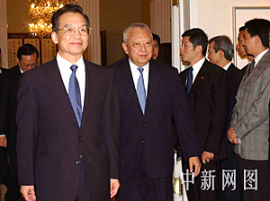 六月二十九日,國務院總理溫家寶訪港,圖為香港特首董建華在禮賓府迎候溫家寶。中新社記者 潘索菲 攝