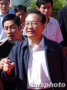 圖:國(guó)務(wù)院總理溫家寶熱情問(wèn)候記者
