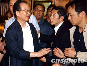 圖:國(guó)務(wù)院總理溫家寶熱情問候記者