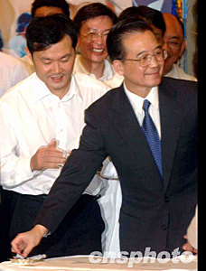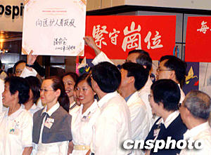 訪港的國務院總理溫家寶,六月三十日視察沙田威爾斯親王醫(yī)院,并即場寫上「向醫(yī)護人員致敬」的題字。中新社記者 錢興強 攝