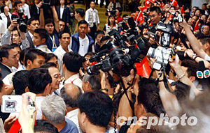 短短十?dāng)?shù)分鐘,聞風(fēng)而至的市民把E座門口的過道擠得水泄不通,不少市民紛紛與記者們一起舉起相機(jī)拍下總理平易近人的風(fēng)采。