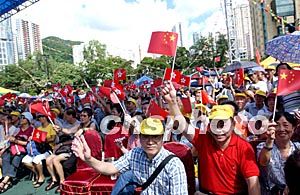 7月1日,市民以輕松愉快的心情,在維園舉辦大型慶祝香港回歸祖國活動中揮舞國旗,紀(jì)念香港回歸祖國。洪少葵 攝