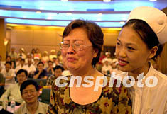中新社廣州七月二日電 (記者王華)廣東省最后三名非典病人今天上午全部康復(fù)出院,患者與醫(yī)護(hù)人員相互擁抱慶賀。廣東省副省長(zhǎng)雷于藍(lán)等有關(guān)負(fù)責(zé)人參加了歡送會(huì)。