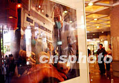 香港一家購物商場展出醫(yī)護人員醫(yī)治SARS病人的照片,提醒市民不可掉以輕心,預防病毒死灰復燃。洪少葵 攝