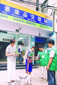 為了更好地辦好市府的這件實事工程,該區(qū)由3家國有和集體企業(yè)及2個自然人參股,組成了多元化投資的黃浦區(qū)浦景廢舊物資回收公司。據(jù)總經(jīng)理馬虎平介紹,新開辦的廢品交投站以全新的經(jīng)營機(jī)制和管理模式運(yùn)作,把廢品收購做成“小超市”,并實行“三級網(wǎng)絡(luò)”管理。以老西門、半淞園街道為例,每個里委建立一個收購點,每個街道開設(shè)一家交投站,全市有統(tǒng)一的分揀場。目前兩街道共有66個廢品回收點,平均每個小區(qū)就有2個回收點,受益居民達(dá)9萬戶,居民在家門口就能方便地交投廢舊物品了。