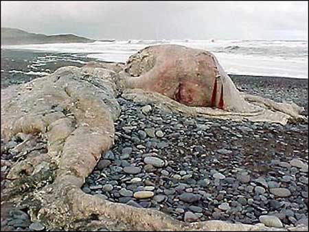 在正式認(rèn)定的100多種章魚中,最大的一種長(zhǎng)達(dá)7米。智利海軍上周向鯨類保護(hù)中心報(bào)告發(fā)現(xiàn)兩條擱淺的鯨魚后,卡瓦雷拉便在周末趕到現(xiàn)場(chǎng)查看。其中一具尸骸是座頭鯨,另一具則完全是個(gè)大驚奇。他說:“我們從未見過如此奇特的生物體。”