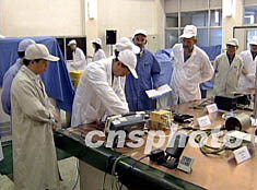 “今天試驗(yàn)的內(nèi)容是檢測(cè)一個(gè)儀器在衛(wèi)星上遇到特殊情況能否自動(dòng)關(guān)閉,也就是它的自動(dòng)控制功能”吳季介紹說(shuō)。用來(lái)做聯(lián)試的實(shí)驗(yàn)室分為里外兩間,里間的一張4、5米長(zhǎng),2米寬的大桌子上模擬衛(wèi)星中的狀態(tài),放著8臺(tái)探測(cè)器和7臺(tái)服務(wù)設(shè)備,從表面上看,這些探測(cè)儀器像是一個(gè)個(gè)普通的小黑匣子。它們都被或粗或細(xì)的電纜線相互連接著。外間則是一圈的電腦,這里是模擬的衛(wèi)星數(shù)據(jù)地面接受站,十幾個(gè)工作人員正在忙碌著。里外兩間實(shí)驗(yàn)室中間隔著一堵玻璃墻,從外間進(jìn)里間,必須要通過(guò)一個(gè)小小的“風(fēng)淋”室,15秒鐘,吹掉身上的浮塵。因?yàn)槔镩g的儀器試驗(yàn)對(duì)環(huán)境有很高的要求,要將實(shí)驗(yàn)室里浮塵的量控制在一定量之內(nèi)。