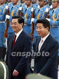 胡錦濤說,中韓在朝核問題上的立場有許多共同點(diǎn),在爭取和平解決朝核問題的過程中,中韓有必要加強(qiáng)相互協(xié)調(diào)與溝通,發(fā)揮各自的影響,使北京會談開始的對話進(jìn)程繼續(xù)下去。