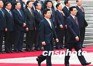 中國國家主席胡錦濤七日在北京舉行儀式歡迎韓國總統(tǒng)盧武鉉訪華。中新社記者:滿會(huì)喬