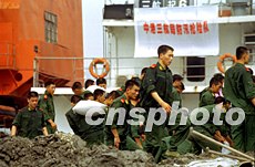 搶險現(xiàn)場,原先歪歪斜斜的兩幢建筑物已徹底消失,而剩下的那幢八層樓房也已拆除過半。建筑物廢墟清理進展十分迅速,昨日澆筑起的半個足球場大的水泥地,今天已延伸近臨江花園大廈的北側(cè)圍墻邊,平坦的水泥地為大型工程車及搶險設(shè)備進出現(xiàn)場提供了極大的便利。記者看到,有運輸卡車停在水泥地的一側(cè),直接把車上泥沙倒卸在施工現(xiàn)場。據(jù)卡車司機介紹,他每天要運送二百噸左右的水泥,他們公司共有二十多名司機在此待命,另外還有多家運輸隊伍共同參與此項工作。