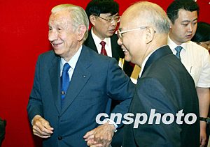 國際奧委會終身名譽主席薩馬蘭奇的著作《奧林匹克回憶》中文版首發(fā)式七月八日在北京人民大會堂舉行。國際奧委會執(zhí)行委員、中國奧委會名譽主席何振梁出席首發(fā)式并向薩馬蘭奇表示祝賀。中新社記者:毛建軍