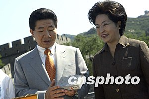 盧武鉉與夫人登上北京八達(dá)嶺長(zhǎng)城。中新社記者:毛建軍  盧武鉉與夫人登上北京八達(dá)嶺長(zhǎng)城,體驗(yàn)“不到長(zhǎng)城非好漢”的美妙感受。中新社記者:毛建軍
