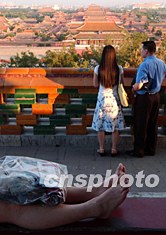 仲夏日的午后,許多游客慕名來(lái)到北京景山山頂俯瞰故宮美景,而在此納涼的一些市民陋習(xí)不改,大煞風(fēng)景。中新社記者:張煒