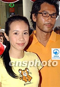 香港歌星莫文蔚和藝員陳啟泰,七月十三日出席在香港舉行的“寶寶健康快樂(lè)之星選舉”愛(ài)護(hù)動(dòng)物活動(dòng)。中新社記者:錢興強(qiáng)