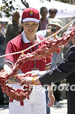 美西時間七月十二日,舊金山市華埠花園角舉行了北加州華人運動會點圣火儀式。正在美國留學的中國游泳界前“五朵金花”之一、一九九二年巴塞羅那奧運會二百米蝶泳銀牌得主王曉紅,用手中火炬點燃了慶祝運動會即將開幕的五萬頭鞭炮。作者:陳鋼