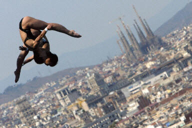 中新網(wǎng)7月14日電 在巴塞羅那舉行的第十屆世界游泳錦標(biāo)賽。中國跳水隊勞麗詩/李婷在女子雙人跳臺決賽中,以344.58分的總分為中國隊贏得本屆世錦賽的第一枚金牌。