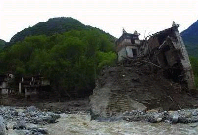 中新網(wǎng)7月14日電 趟過泥濘,走過獨(dú)木橋,眼前是一個(gè)巨大的泥石流沖擊扇,一條混濁的急流從中間穿過,發(fā)出沉悶的響聲?諝庵幸老】梢孕岢鰳淠镜挠南,沖擊扇上到處是已經(jīng)燃完的香和零落的紙錢,幾條新掛起的經(jīng)幡在風(fēng)中飄動(dòng)。要不是在這數(shù)十萬立方米的堆積層上偶然發(fā)現(xiàn)一輛露出一半且已扭曲的自行車和一個(gè)快被完全淹沒的電冰箱,誰能相信這厚厚的沙石和泥土堆積的地方,兩天前還是一個(gè)享譽(yù)中外的小村莊———“丹巴美人谷”!
