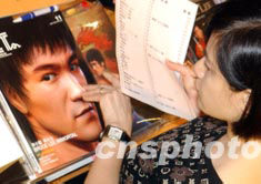 圖為展會(huì)上參觀者購買李小龍紀(jì)念雜志。