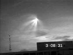 其實,看到這一奇怪現(xiàn)象的不僅僅是鄂木斯克的普通居民,天文學(xué)家弗拉基米爾-克魯格和另外一群科學(xué)家當(dāng)晚正好對某星座進(jìn)行研究,結(jié)果他們的照像機(jī)和攝像機(jī)拍下了奇異的一幕。第二天早晨,天文學(xué)家開始與大家一起探討這種可能的現(xiàn)象。實際上,遠(yuǎn)在莫斯科的居民如果留意的話也能看到這一奇異的現(xiàn)象。鄂木斯克的天文愛好者立即把這一現(xiàn)象貼到網(wǎng)絡(luò)上。然而,令UFO迷們大失所望的是,UFO研究機(jī)構(gòu)斷定,這是幾級火箭分離時的情景。