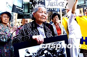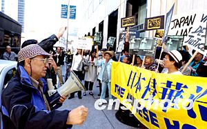 七月十八日,美國舊金山日本侵華浩劫紀(jì)念館舉行“為正義而呼喚!為史實(shí)而抗議!”的示威游行,百余名華人前往日本駐舊金山領(lǐng)事館遞交抗議書,要求日本承認(rèn)“對(duì)華侵略”,真心悔改,“向中國人民謝罪道歉”,對(duì)受害者“作出公平的賠償”。作者:陳鋼