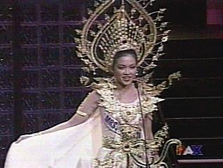 來(lái)自全球39位佳麗齊聚美國(guó)拉斯維加斯,為爭(zhēng)取2003年世界小姐的桂冠寶使出混身解數(shù)。來(lái)自泰國(guó)的蘇珊娜在機(jī)智問(wèn)答中,以沉著穩(wěn)重的氣度舒展大將之風(fēng),她被問(wèn)到的題目是為什么希望成為世界小姐,她回答:“因?yàn)槲抑来魃狭嘶使诰透队栉沂嬲宫F(xiàn)代女子的能力,無(wú)論在泰國(guó)、美國(guó)、或任何地方,展示出我們高貴有教養(yǎng),有能力,并展示我們很愛(ài)家人有高道德!