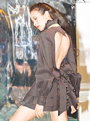 莫文蔚在演繹其中一套黑色裙時(shí),突然來(lái)一招自創(chuàng)撥發(fā),既Sell秀發(fā)的同時(shí)又Sell那件露背裝,一舉兩得。Karen在展示會(huì)后隨即拿走大部分Joanna設(shè)計(jì)的時(shí)裝到西班牙拍寫(xiě)真集,雖然Joanna也有很性感的設(shè)計(jì),但Karen強(qiáng)調(diào)寫(xiě)真集不會(huì)賣(mài)弄性感,她是走性格路線的。