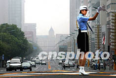 通過公開招聘的二十五名腳蹬白靴的女警花,七月二十二日起在大連繁華路段執(zhí)勤,為當日拉開序幕的亞歐經濟部長會議開道。中新社記者:鄭萍萍