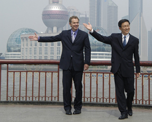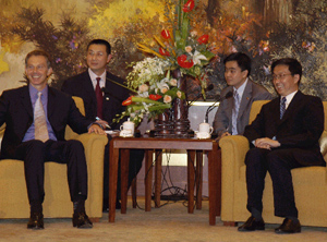 布萊爾拜訪了韓正市長(zhǎng)并就雙方共同感興趣的經(jīng)濟(jì)及商業(yè)合作進(jìn)行了討論。雙方主要議題是通過英中合作來加強(qiáng)中國(guó)經(jīng)濟(jì)的發(fā)展;研究英國(guó)公司在該合作進(jìn)程中所起的作用;討論影響上海及中國(guó)其他地區(qū)商務(wù)環(huán)境的有關(guān)事宜。