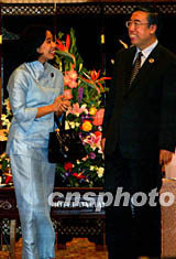 中國商務(wù)部部長呂福源二十三日在大連會見印度尼西亞工貿(mào)部長麗妮·蘇婉媂女士。中新社記者:鄭萍萍