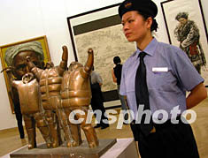 中國美術(shù)館建館四十周年慶典暨改造裝修工程竣工儀式二十三日舉行,展現(xiàn)百年中國美術(shù)發(fā)展歷程的館藏精品在裝飾一新的展廳中,呈現(xiàn)迷人風(fēng)采。中新社記者:張勤