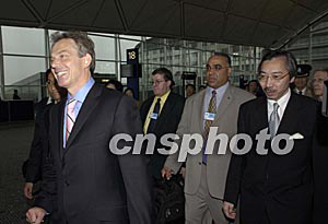 因受伊布都臺風影響,英國首相布萊爾七月二十三日提前結束在香港的訪問,乘專機離港。中新社圖