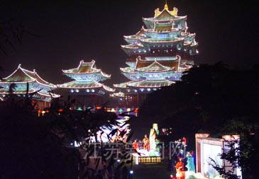 閱江樓位于獅子山上,瀕臨長江,樓高52米,明四暗三共七層,氣勢恢宏,為長江第一高樓。夜晚登臨其上,清風(fēng)徐來,近處可觀賞大明雄風(fēng)主題燈展,舉目眺望,既可盡覽大江風(fēng)光,又可欣賞古城美景。聯(lián)想起當(dāng)年朱元璋、鄭和等人物的風(fēng)采,更是引人入勝。