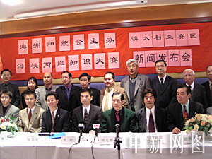 澳洲中國和平統(tǒng)一促進(jìn)會(huì)24日舉行新聞發(fā)布會(huì),宣布"第二屆海峽兩岸知識(shí)大賽"澳大利亞賽區(qū)預(yù)賽將于八月二十四日在悉尼舉行。參賽的有來自悉尼大學(xué),新南威爾士大學(xué),麥覺理大學(xué),悉尼科技大學(xué)和臥龍崗大學(xué)五支大學(xué)生代表隊(duì)以及一支全部由學(xué)習(xí)中文的西人組成的代表隊(duì)。冠軍隊(duì)將代表澳大利亞賽區(qū)前往中國參加復(fù)賽和決賽。