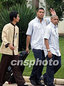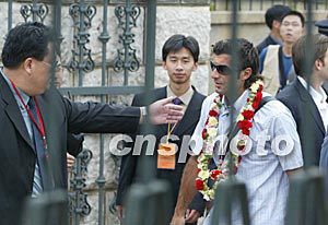 隨后下車的羅納爾多、齊達內、菲戈、勞爾等巨星的號召力顯然不如剛剛加盟皇馬的貝克漢姆,圍在身邊的記者要少許多。趁此之機,本社記者在第一時間采訪了菲戈,菲戈告訴記者,這是他第一次到中國大陸,感覺很不錯。