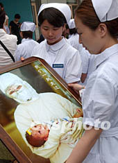 二十五日,北京地壇醫(yī)院獲贈(zèng)一批反映該院醫(yī)務(wù)人員抗擊非典的攝影作品。北京地壇醫(yī)院是目前中國(guó)國(guó)內(nèi)唯一仍收治非典病人的定點(diǎn)醫(yī)院,部分醫(yī)務(wù)人員仍在抗擊非典第一線(xiàn)。中新社記者:張煒