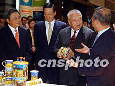 七月二十五日,香港行政長(zhǎng)官董建華參觀正在此間舉行的“香港家庭用品展及香港禮品及贈(zèng)品展”。作者:潘索菲