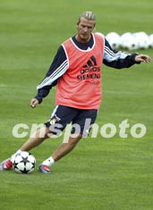 西班牙皇家馬德里足球隊(duì)二十六日下午在昆明冒雨訓(xùn)練,貝克漢姆漸入狀態(tài),展示他的腳下傳世神功。中新社記者:毛建軍