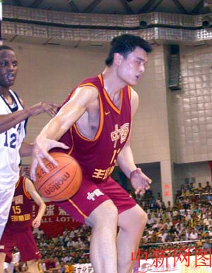 中新網(wǎng)陽江7月28日電(曾運廣 索有為) 27日晚上在廣東陽江舉行的“春潭杯”中美籃球?qū)官愂侵袊鴩H男籃超級巡回賽中最精彩的一場。賽前受傷的姚明終于在場上出現(xiàn),并打了36分51秒,此場比賽中國隊再次以79:74將美國全明星隊挑于馬下。