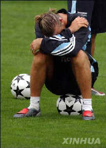 中新網(wǎng)7月28日電 貝克漢姆加盟皇馬后打進(jìn)的第一個(gè)球竟然是烏龍球!27日下午,主帥奎羅斯把全隊(duì)分成兩組進(jìn)行四球門對(duì)抗賽。據(jù)體壇周報(bào)報(bào)道,可以往兩個(gè)門里進(jìn)球?穿著紅背心的小貝先是一怵,經(jīng)老鄉(xiāng)麥克馬納曼的解釋,小貝饒有興致地開踢了。