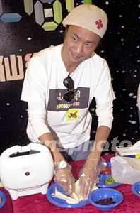 歌影紅星古巨基手持航天員模型,展露童心未泯的笑容。作者:鄧慶樂