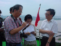 在重慶轄區(qū)的幾個(gè)區(qū)、縣、鎮(zhèn),記者通過(guò)對(duì)農(nóng)村移民、集鎮(zhèn)移民和移民新縣城的采訪,了解我百萬(wàn)移民計(jì)劃實(shí)施現(xiàn)狀和各地移民搬遷前后的生活變化。通過(guò)對(duì)石寶寨、張飛廟、白帝城等的實(shí)地考察,了解庫(kù)區(qū)人文景觀和文物就地保護(hù)、異地保護(hù)、水下保護(hù)的措施及所取得的成績(jī)。通過(guò)對(duì)污水處理廠和長(zhǎng)江防護(hù)大堤的采訪,了解政府治理水污染和防洪方面的努力。