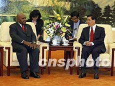 中國國家主席胡錦濤三十日在北京會(huì)見巴布亞新幾內(nèi)亞總督阿托帕爾。中新社記者:滿會(huì)喬