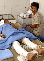 七月底,河北辛集從省內(nèi)及北京請來燒傷等方面的專家,對日前發(fā)生的爆炸事故受傷人員進(jìn)行會(huì)診,確保他們得到及時(shí)、有效的治療,早日康復(fù)出院,受傷人員家屬對親人的日漸好轉(zhuǎn)及醫(yī)院的各項(xiàng)優(yōu)惠措施表示滿意。中新社記者:武仲林