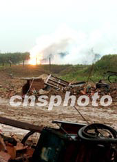 記者趕到成功引爆以后的現(xiàn)場(chǎng),發(fā)現(xiàn)引爆現(xiàn)場(chǎng)還在冒著濃濃的白煙,據(jù)郭新年介紹,這是因?yàn)檫有剩余的硫沒有燃燒完。他還介紹說,為了保證打火的成功,他們用了三根引線同時(shí)點(diǎn)火。電打火引爆炸藥點(diǎn)燃了原先鋪設(shè)的煤油和油布,引起可燃爆物的燃燒爆炸。前面聽到了兩聲大的響聲是引爆炸藥的聲音,后三聲爆炸聲來自那些可燃爆物的燃燒爆炸。