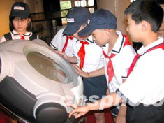 八月一日,宋慶齡基金會、全國少工委聯(lián)合瑞士斯沃琪公司向北京市部分中小學(xué)和校外教育單位捐贈一批寓意深刻的禮物——著名的瑞士斯沃琪鐘表。以表示對中國教育事業(yè)的鼎力支持和對廣大少年兒童的真切關(guān)愛。圖為小學(xué)生們在捐贈儀式上興致勃勃地觀看富有科技魅力和時代氣息的鐘表。中新社記者:張勤