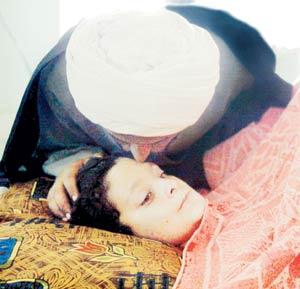 醫(yī)院的人員給了納克霍爾一個口罩和罩衣,然后領(lǐng)她進了一個病房,與這家醫(yī)院其它病房的混亂場面相比,這間病房相當安靜,里面一個婦女坐在一個低矮的床上,而床上一個小男孩兒躺一個骯臟的毯子上,身上罩了一個生了銹的金屬籠子,頭上包著厚厚的白繃帶,他用大大的眼睛靜靜地看著那個婦女,令人心驚肉跳的是他的兩只胳膊從肩膀處就沒有了,下巴以下的身體軀干上有一塊大大的傷疤,被燒成了黑木炭樣。