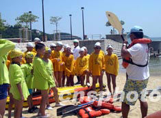 “2003年救生小鐵人培訓(xùn)計(jì)劃”。由香港拯溺總會主辦“2003年救生小鐵人培訓(xùn)計(jì)劃”,三日在淺水灣舉行,雖然天晴酷熱,最高氣溫約33度,但小朋卻細(xì)心聆聽導(dǎo)師講話。中新社記者:譚達(dá)明